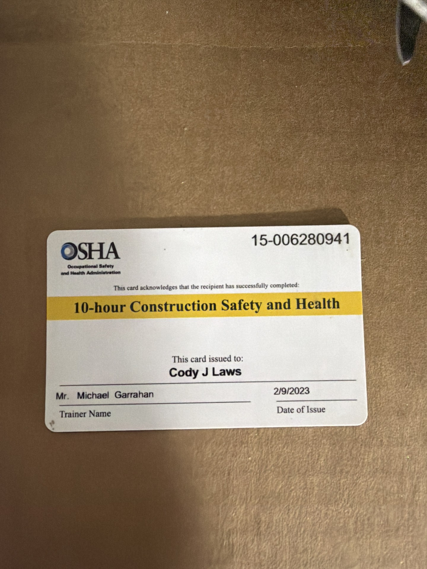 | OSHA 10 | 2023-02-09 | ![]() C.-Laws-OSHA-10.jpg |